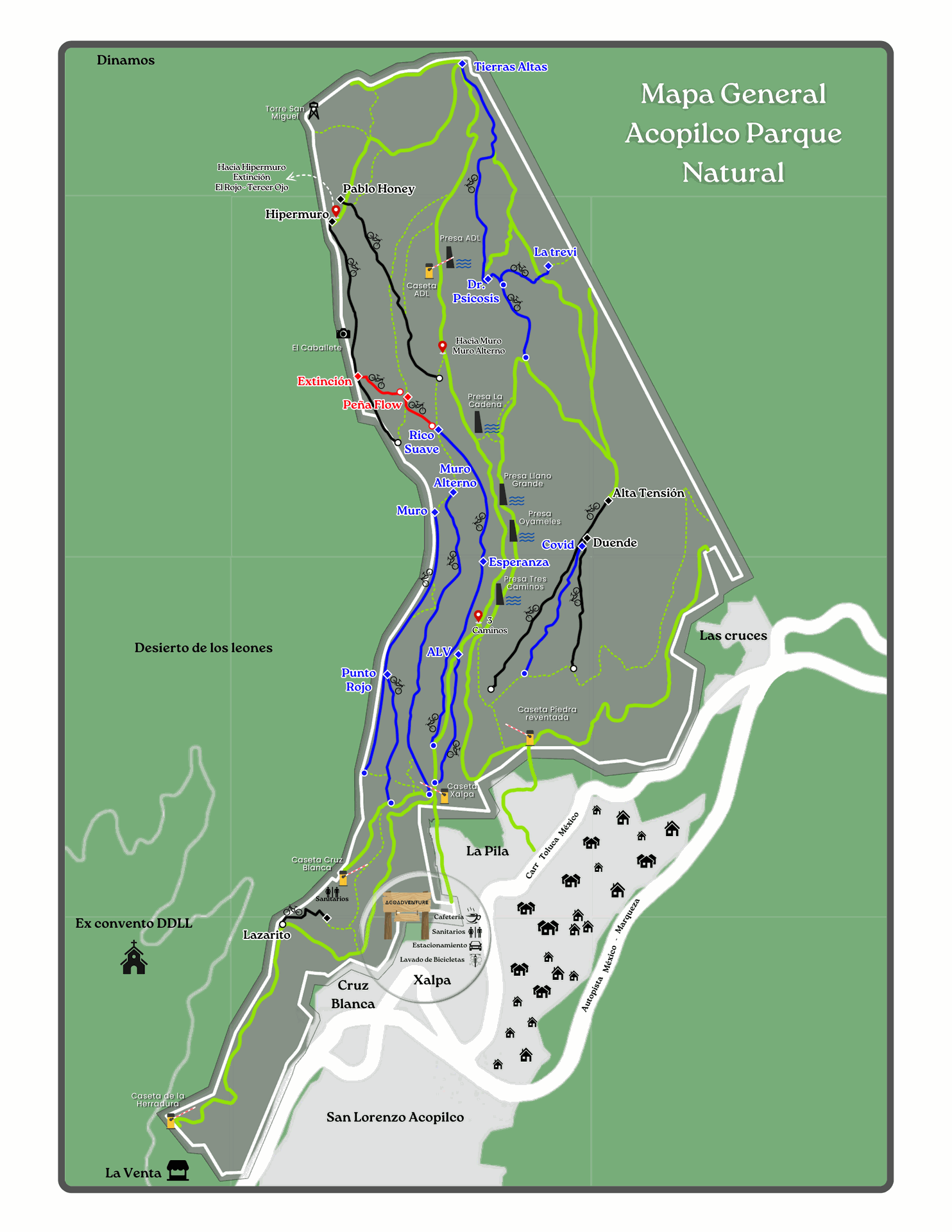 Le invitamos a unirse a nuestra misión haciendo ya sea una contribución voluntaria o bien adquiriendo su boleto de entrada al parque a través de esta pagina oficial. Su apoyo es crucial para garantizar el buen estado y mantenimiento de nuestras pistas.